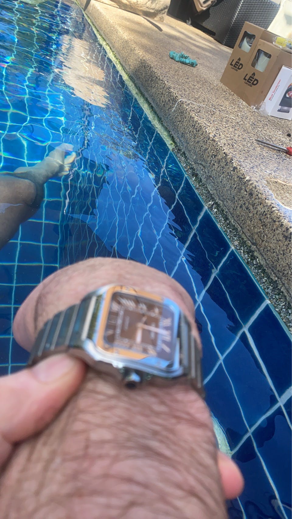 หน้าปัด: สีน้ำเงิน พร้อมตัวเลขโรมัน คลาสสิก และเข็มสีน้ำเงิน